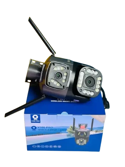 The Dual Lens Security IP Camera V380 Pro Smart Home 4MP is a powerful wireless outdoor IP camera designed to keep your home and property safe, day and night. With its dual 2MP lenses (2MP+2MP = 4MP total), auto tracking, and full-color night vision, this camera ensures no detail is ever missed. Whether you want to monitor your home, office, shop, or outdoor space, the V380 Pro gives you reliable protection with easy setup and remote access from your smartphone.