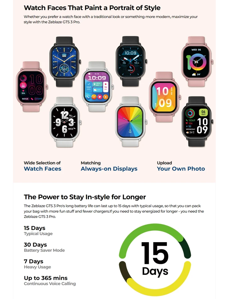 Zeblaze GTS 3 Pro Smart Watch AMOLED Display: