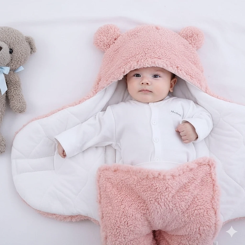 নবজাতক শিশুর জন্য আরাম, উষ্ণতা এবং সুরক্ষার নিখুঁত সমাধান। নরম ফার উপাদান শিশুর কোমল ত্বকে স্বপ্নের মতো অনুভূতি দেয়, আর ভেতরের প্যাডিং তাকে নিরাপদে জড়িয়ে রাখে।