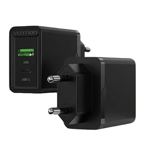 Its compact design and EU plug make it easy to carry and usable across most European nations. Overall, the VENTION FBBB0-EU Two-Port Type-A and Type-C 18W/20W Wall Charger Adapter is a reliable and efficient charging solution.